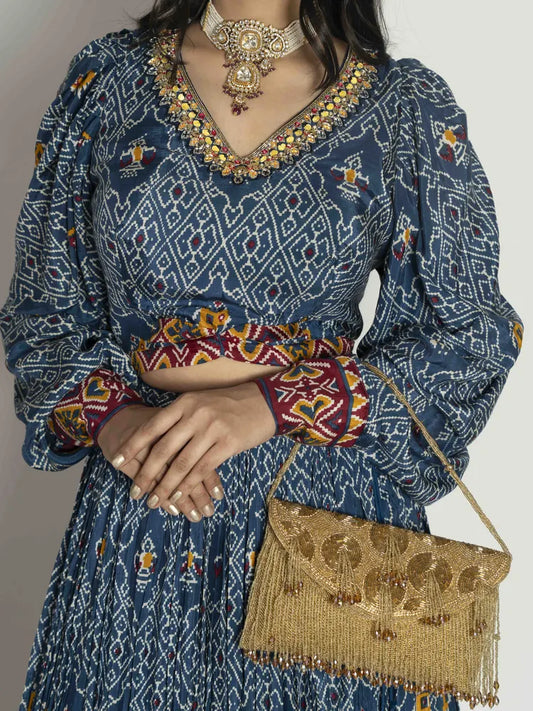 Beige Blue Delight – Skirt, Blouse & Shrug Set