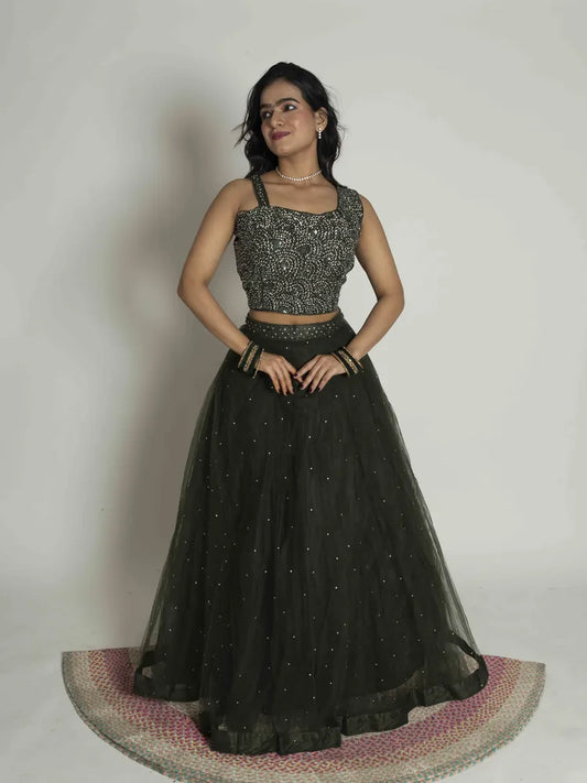 Black Multi Majesty – Peplum, Skirt & Dupatta Set