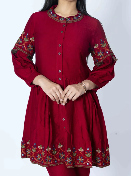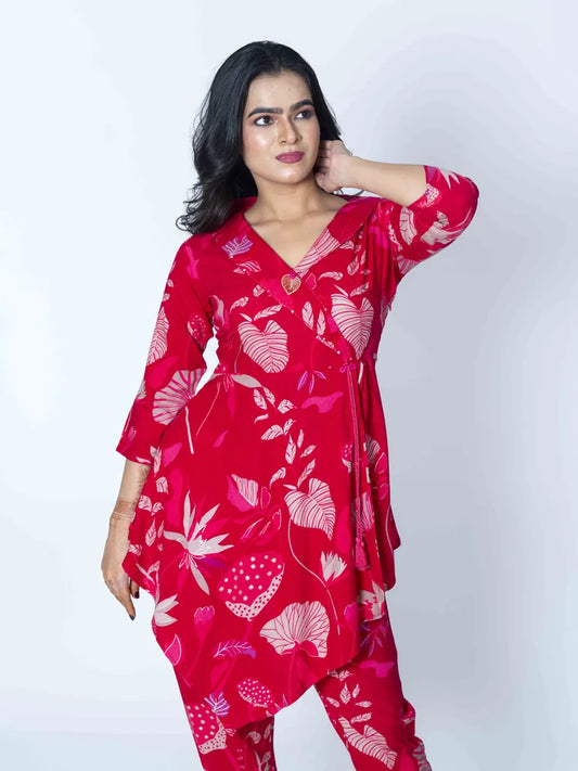 Red Radiance – Shrug, Palazzo & Crop Top Set