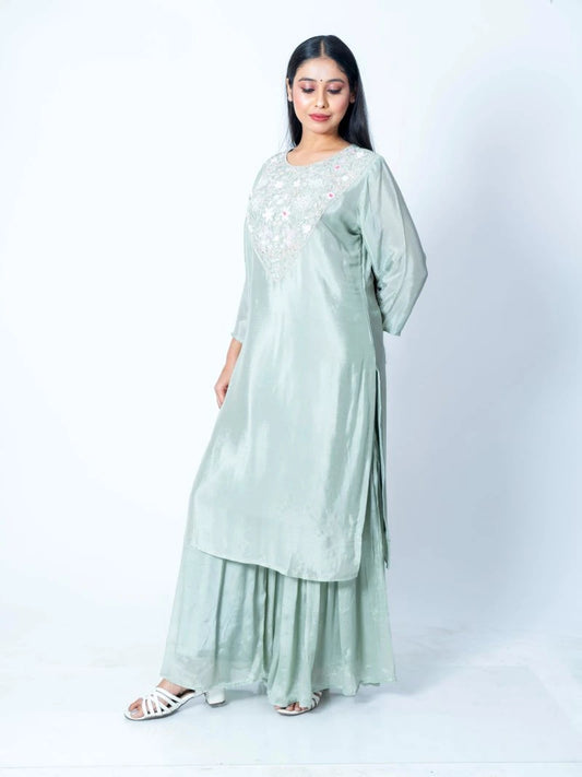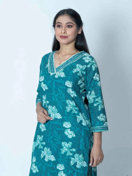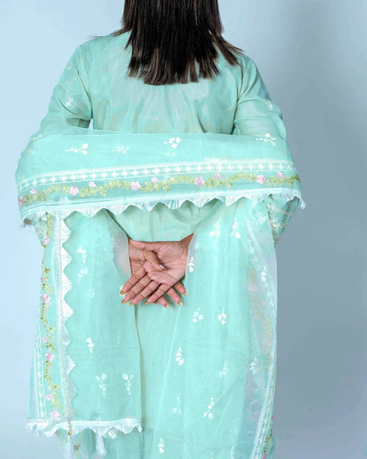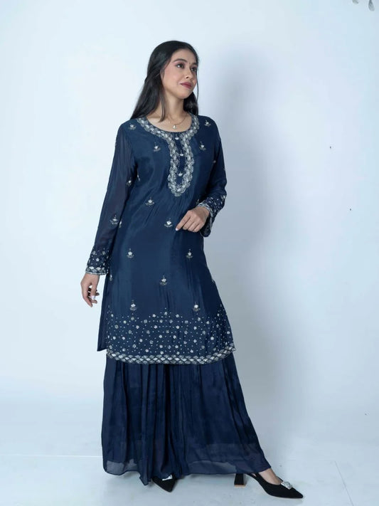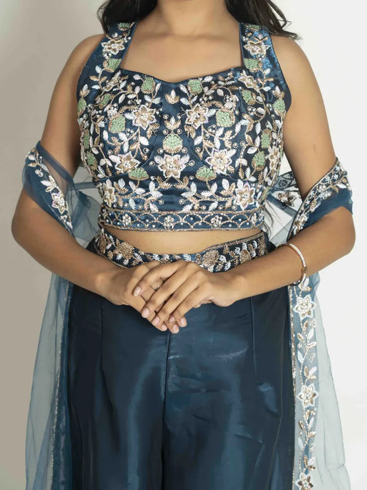 Teal Blue Delight – Palazzo, Blouse & Shrug Set