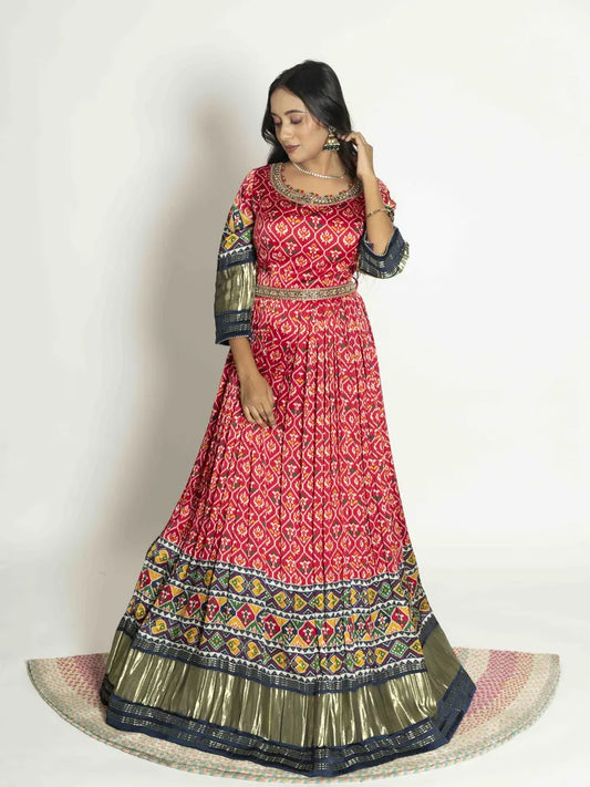 Pink (Rani) Anarkali Dupatta Belt Suit