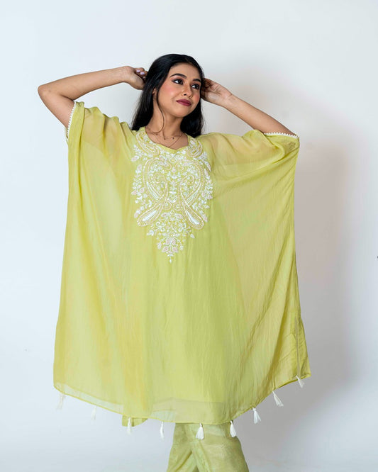 Pistachio Elegance Suit with Shatoon Plazo & Organza Dupatta