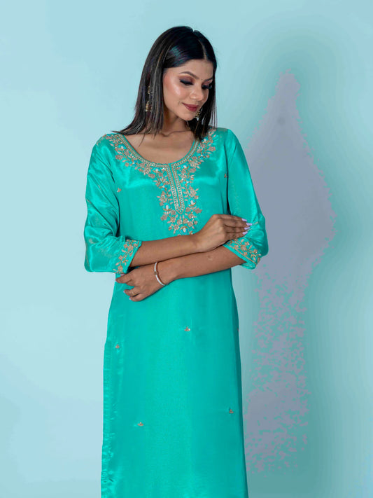 Ocean Breeze: Sea Green Designer Shimmar Opada Suit