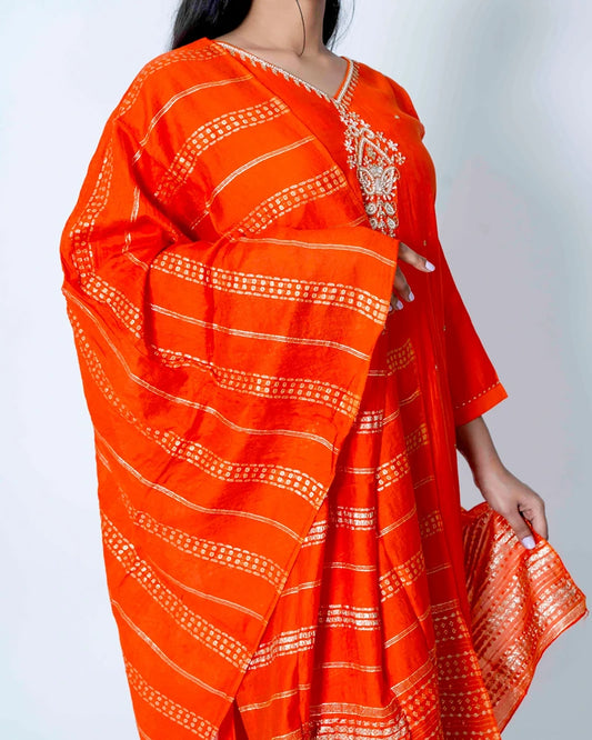 Jewel of Awadh: Orange Crush Tissue Banarasi Saree