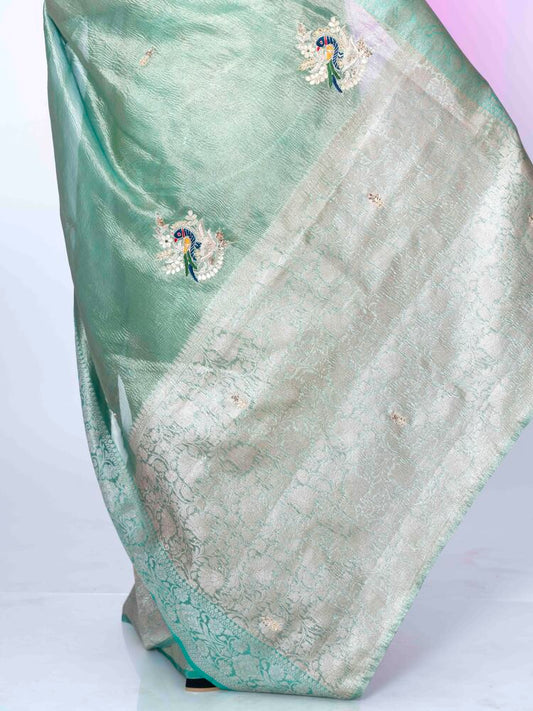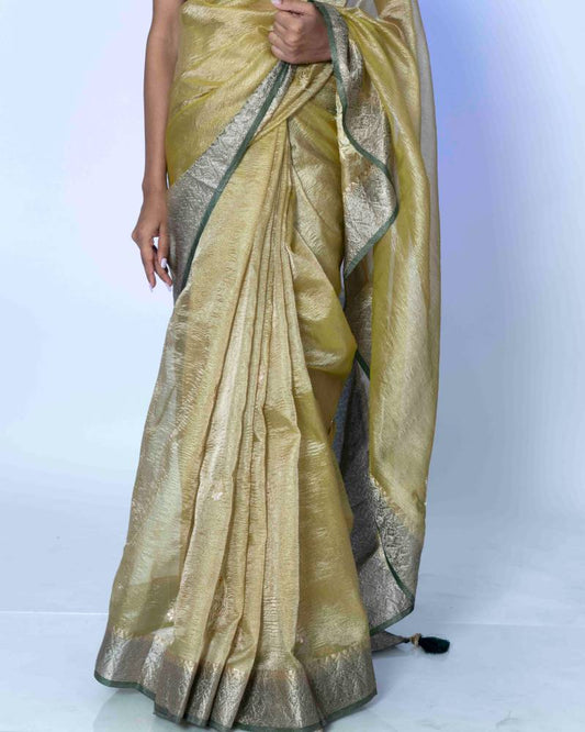 Emerald Elegance Green Crush Tissue Banarasi Saree