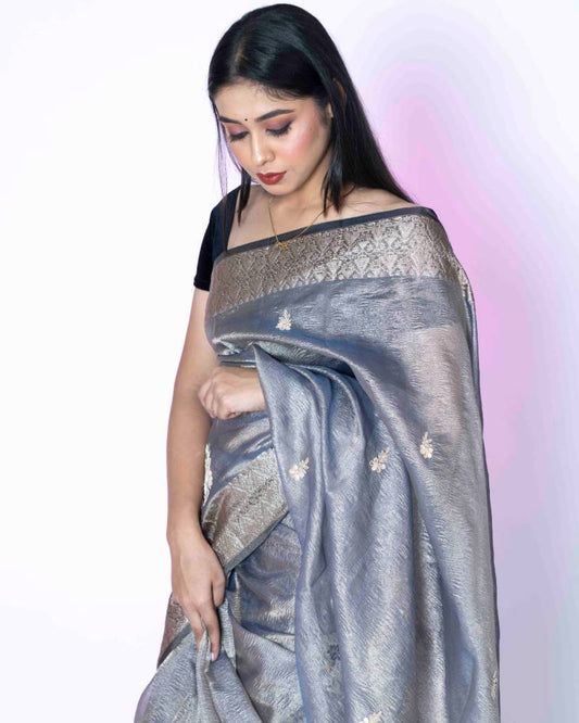 Ethereal Grace Grey & Golden Tissue Saree