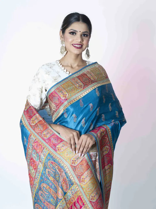 Nawab's Charm: Blue Crush Tissue Banarasi Saree