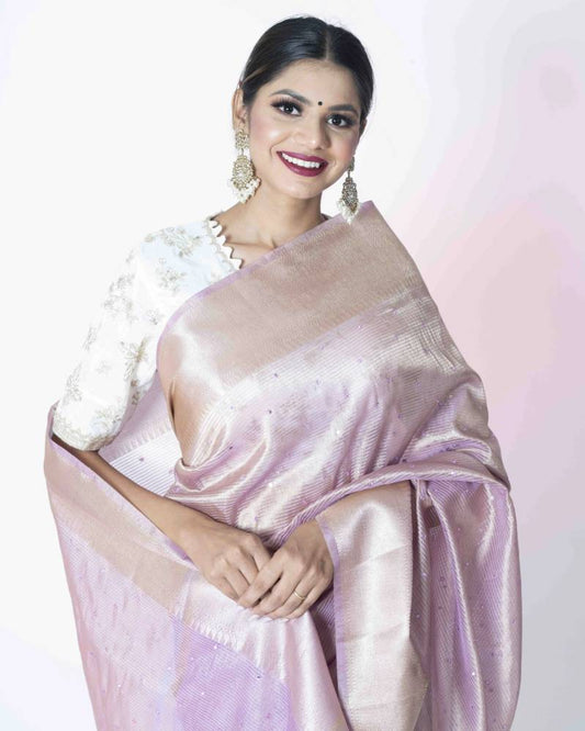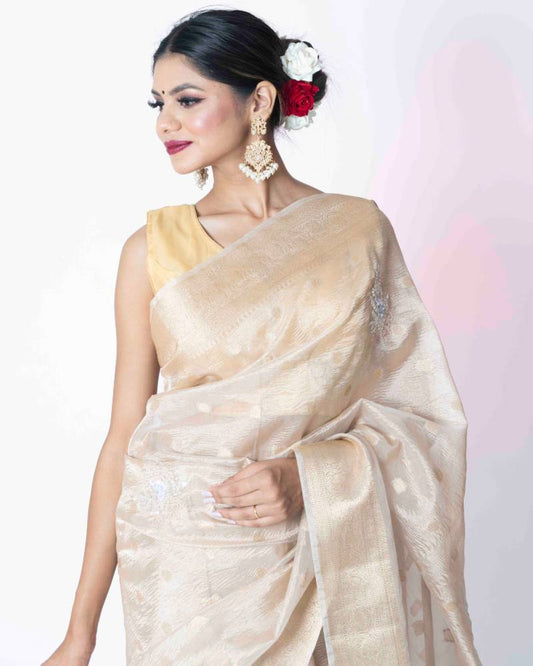 Pearl of Awadh: Cream Crush Tissue Banarasi Saree